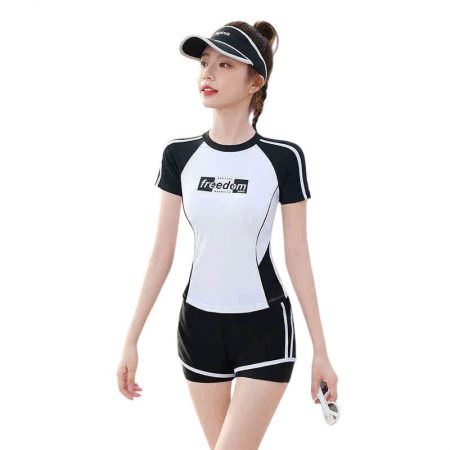 - Mẫu Áo Bơi Nữ Tay Ngắn đẹp, phối màu nặng động trẻ trung.